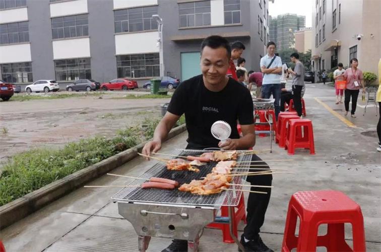 不一會兒,濃煙繚繞,香味撲鼻而來,同事們手中的烤串仿佛換了件“衣裳”,外焦里嫩,色澤光鮮,讓人聞了“口水直流三千尺”,不禁感嘆:此味只應(yīng)天上有,人生難得機(jī)會聞!于是乎,大家伙們擼起袖子,盡情地享受著這人間美食,工作后的疲憊早已飛到了九霄云外,工作中的煩惱仿佛也在此刻化為烏有,愉快輕松的氣氛充滿著整個聚會現(xiàn)場。