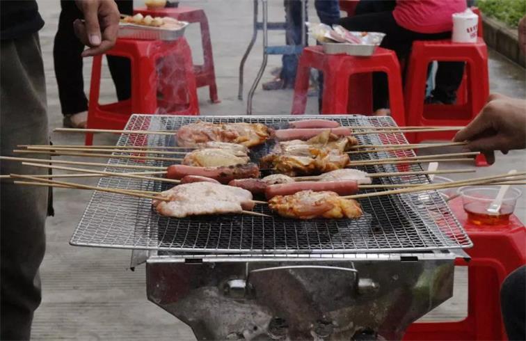 大約10分鐘的準(zhǔn)備之后,這場“大家庭式”的聚會就正式“拉開了帷幕”:東邊烤香腸,西邊烤雞翅,北邊烤蔬菜,南邊烤蟹柳。大家伙們都忙的不亦樂乎,歡笑聲此起彼伏。